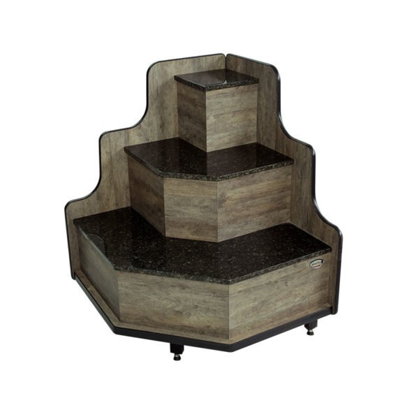 Ideal para organizar e destacar frios, queijos, embutidos e defumados em açougues, delicatessens e conveniências. Estrutura de canto com prateleiras em granito, resistente e prática.