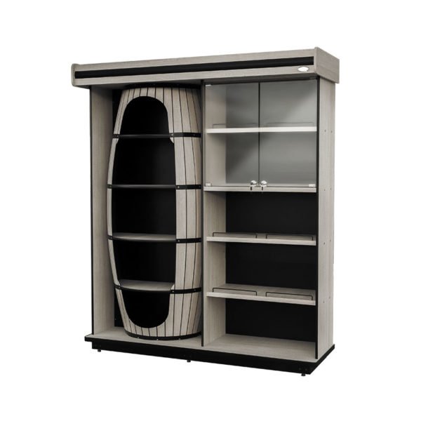 Expositor de vinhos em madeira tipo adega. Organização prática, visual sofisticado e estrutura em MDF para bares, lojas e adegas.