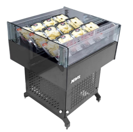Sua estrutura foi desenvolvida para garantir excelente visibilidade dos produtos, com laterais em vidro temperado e iluminação em LED, promovendo maior atratividade na exposição de frios, laticínios, carnes embaladas, bebidas e alimentos prontos. A máquina acoplada (sistema plug-in) oferece praticidade de instalação, sendo ideal para ambientes que necessitam de flexibilidade no layout.
