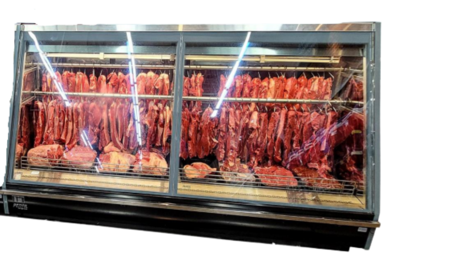 O Expositor Vitrine Estática para Carnes é ideal para açougues, supermercados e frigoríficos que buscam preservar e apresentar carnes de forma elegante, higiênica e eficiente. Com estrutura em aço inox e vidro temperado, proporciona total visibilidade dos produtos, mantendo a refrigeração estática constante para garantir a qualidade das peças expostas. Este modelo possui dupla porta deslizante frontal, prateleiras superiores para pendurar cortes longos e base inferior para cortes planos ou embalados. A iluminação interna realça a coloração natural das carnes, valorizando a experiência de compra.