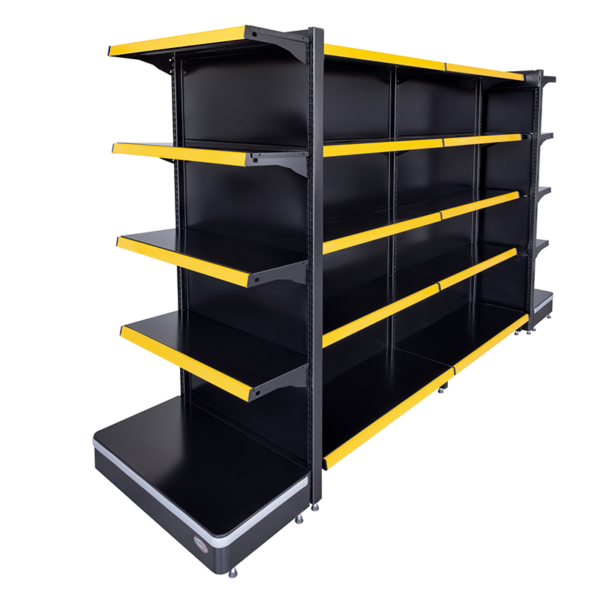 Aposte na gôndola central preta com podium para trazer mais organização, resistência e um visual impactante para sua loja.