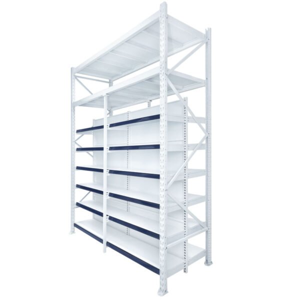 Solução ideal para armazenagem leve e exposição de produtos em um único sistema. Estrutura versátil com planos em chapa ou MDF, modulável e resistente, combinando porta pallet com gôndola para otimizar espaços.